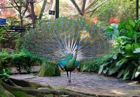 Burung-burung ini ditempatkan dalam sangkar-sangkar raksasa (kubah): kubah paling besar bergaris tengah 68 meter dengan ketinggian 30 meter, sedang yang paling kecil bergaris tengah 20 meter dengan ketinggian 9 meter. Di setiap pinggir kubah dibuat sangkar-sangkar yang menyimpan koleksi burung, sehingga dapat dinikmati dari dalam ataupun luar kubah.