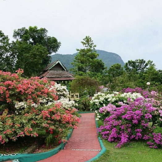 Saat anda berkunjung ke taman ini anda akan disambut dengan keindahan bunga-bunga warna warni nan indah serta berbagai tanaman hias lainnya seperti Anggrek-angrek khas Kalimantan seperti Anggrek Hitam Kalimantan, beragam jenis Nephentes atau Kantung Semar, Anggrek Kuping Gajah, Anthurium, Aglonema serta jenis-jenis flora lainnya. Ada lebih dari 46 jenis Bougenville tumbuh dan dikembangkan di taman ini.