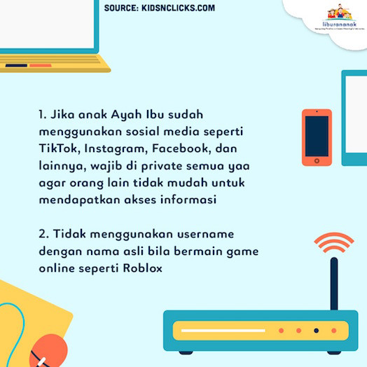 1. Jika anak Ayah Ibu sudah menggunakan sosial media seperti TikTok, Instagram, Facebook dan lainnya, wajib di private semua ya agar orang lain tidak mudah untuk mendapatkan akses informasi