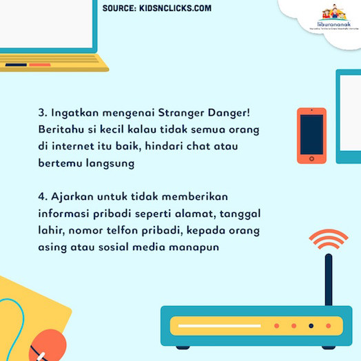 4. Ajarkan untuk tidak memberikan informasi pribadi seperti alamat, tanggal lahir, nomor telfon pribadi, kepada orang asing atau sosial media manapun