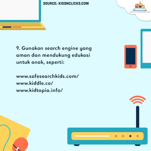 9. Gunakan search engine yang aman dan mendukung edukasi untuk anak, seperti :