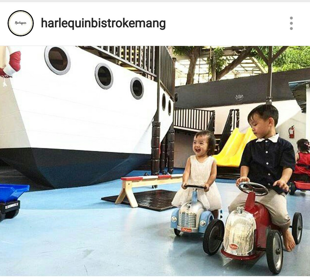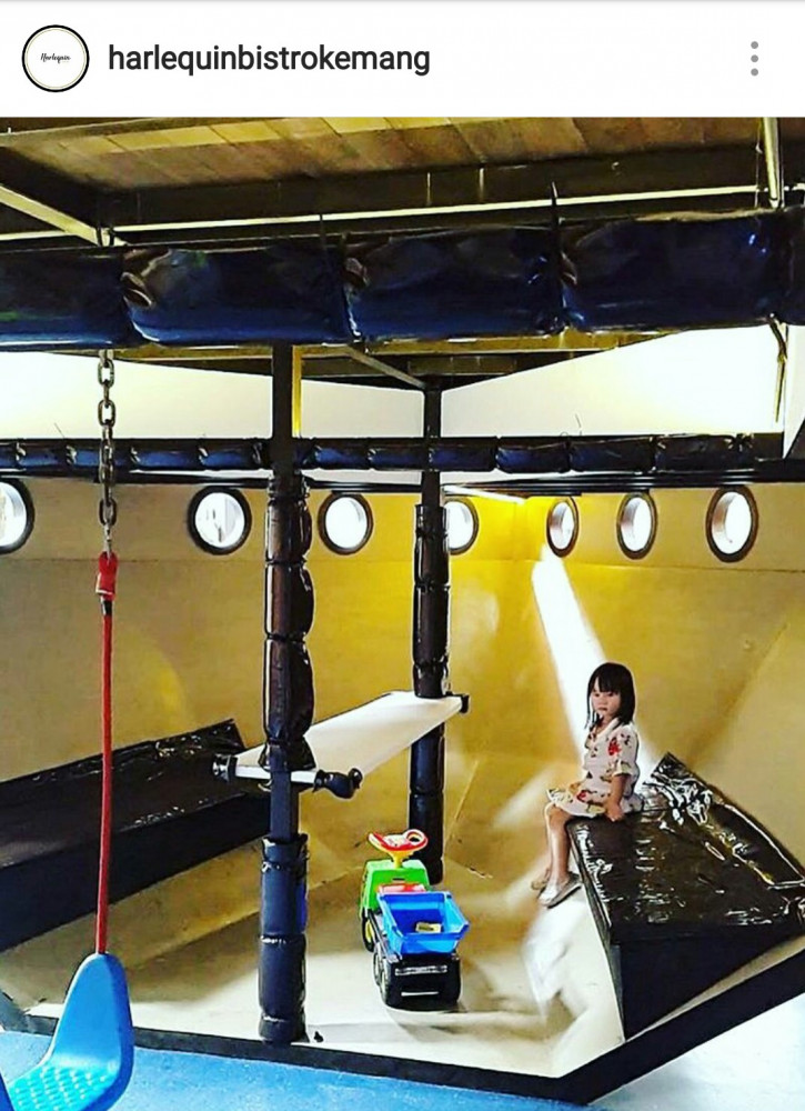 Tak tanggungtanggung, sebuah playground berisi kapal raksasa berada tepat di area belakang, memberikan kepuasan lebih dari sekadar ruang bermain yang kecil. Harlequin berarti berwarna-warni, merujuk pada kebahagiaan hidup yang dirayakan. Ini mencakup ragam kegiatan yang bisa dilakukan oleh orang tua dan anak di bawah satu atap.