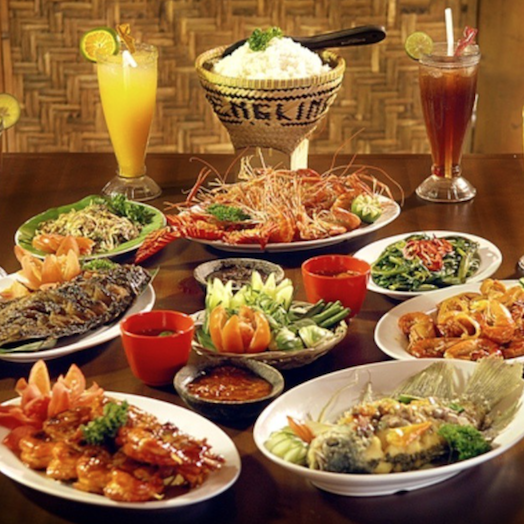 Selain itu, rumah makan ini juga menggunakan konsep tata ruang bangunan berupa gubug atau saung. Penataan ruang ini mampu menghadirkan lingkungan alami dengan pemandangan taman, kolam ikan dan sawah yang asri. Kesan yang nampak dari rumah makan ini adalah rasa sejuk, keindahan serta kenyamanan.