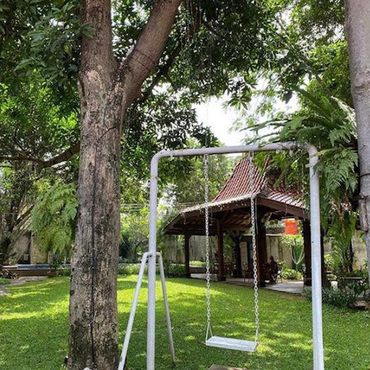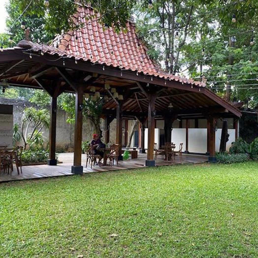 Bahagia adalah..nemu tempat ngopi sepi, outdoor, dikelilingi pepohonan dengan hamparan rumput hijau yang bikin seger mata. Huhuhu sayang banget ini Mimin jalan2 pas gak bawa anak2, padahal mereka pasti hepi deh lari2an di lapangan rumput begini..