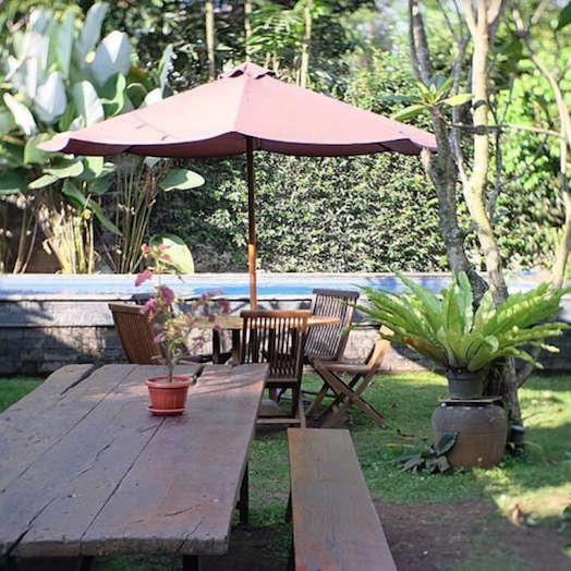 Waroeng Ethnic lokasinya ada di jalan kayak perumahan gitu, jalan masuknya agak menurun ke dalam rumah besar dekat sama pertigaan. Dari depan ini bener-bener kayak rumah banget dan parkirannya cukup luas untuk ukuran rumah, tetapi pas jam makan siang kemungkinan akan ramai karena banyak orang meeting di sini ataupun sekedar main di taman belakang rumah ini.