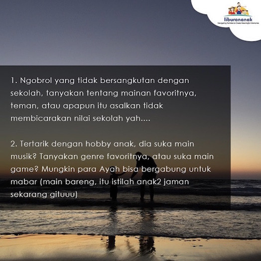 Waktu masih bayi dan toodler, si kecil masih seneng nempel2 dan deket sama kita... semakin besar, kemungkinan renggangnya semakin tinggi karena aktivitas anak udah macem2, ga nyambung, atau mungkin anak-anak bisa takut atau segan bercerita... Gimana ya supaya deket sama anak dan dia nyaman untuk bercerita sama Ayah Ibu? Yukk coba lakukan hal-hal ini