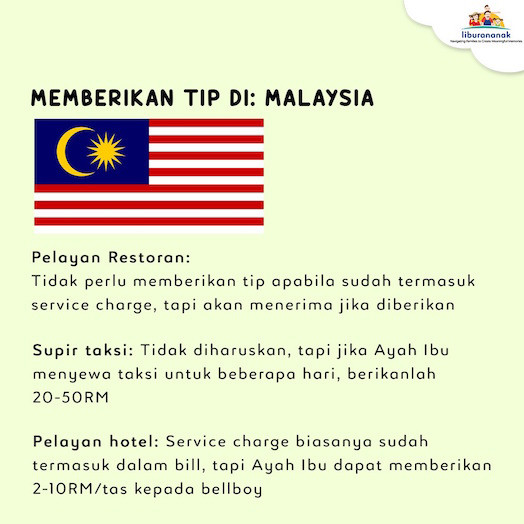 Supir taksi : Tidak diharuskan, tapi jika Ayah Ibu menyewa taksi untuk beberapa hari, berikanlah 20-50RM