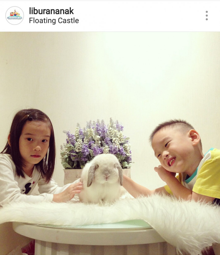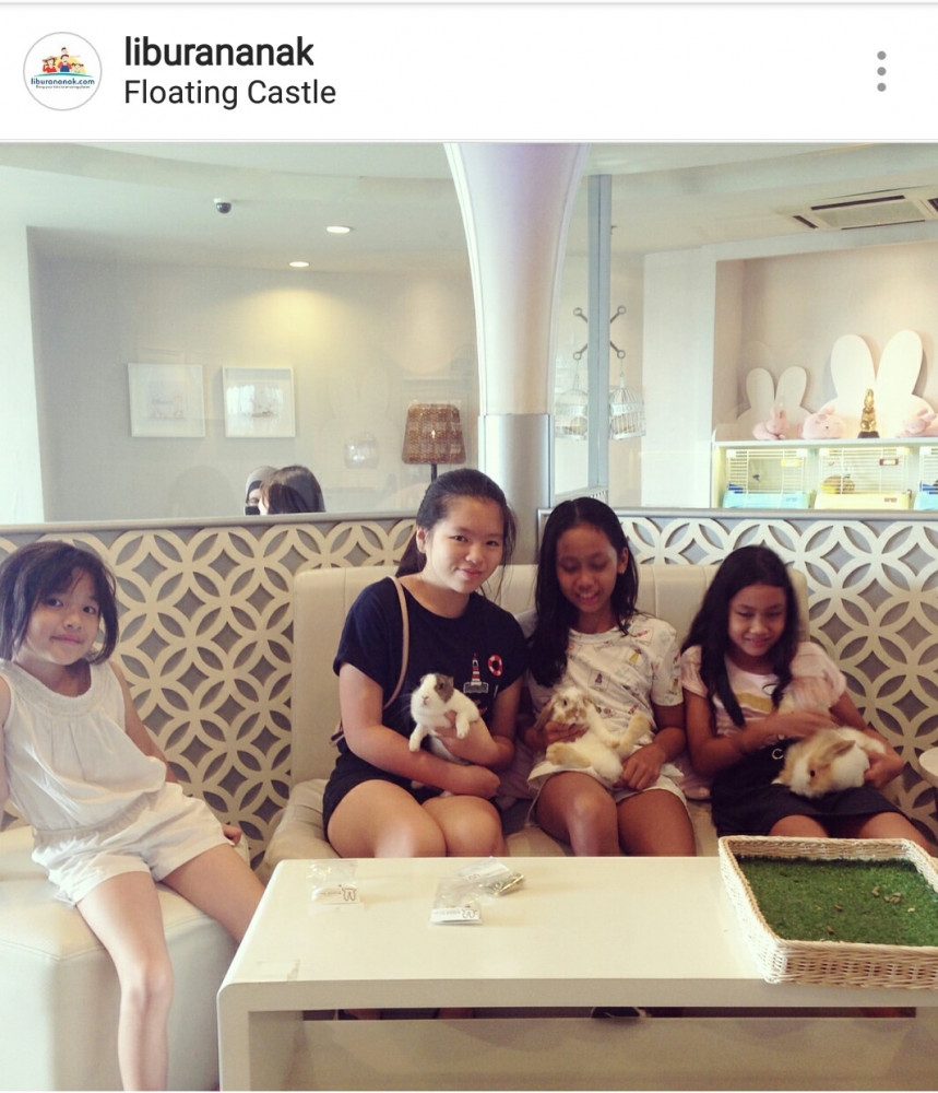 Nah, untungnya sekarang banyak kafe-kafe hewan yang bisa di elus-elus dan diajak main sama anak-anak, mulai dari kafe kucing, kafe anjing dan akhirnya: kafe kelinci! Yeaaay!!! .