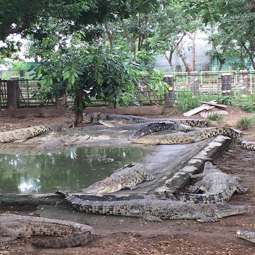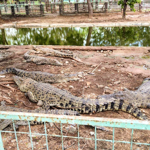 Ada empat jenis buaya yang dikembangbiakkan di Taman Buaya Tanjung Pasir. Pengunjung dapat mengamati buaya Irian, buaya Sumatra, buaya air tawar, serta buaya air payau. Dari semua jenis yang ada, buaya asal Sumatra memiliki jumlah yang paling besar. Reptile-reptil karnivora yang ditangkarkan di TBTP ditempatkan dalam beberapa kolam berbeda tergantung usia dan jenis. Pengunjung dapat mengamati aktivitas satwa tersebut dari tepi-tepi kandang.