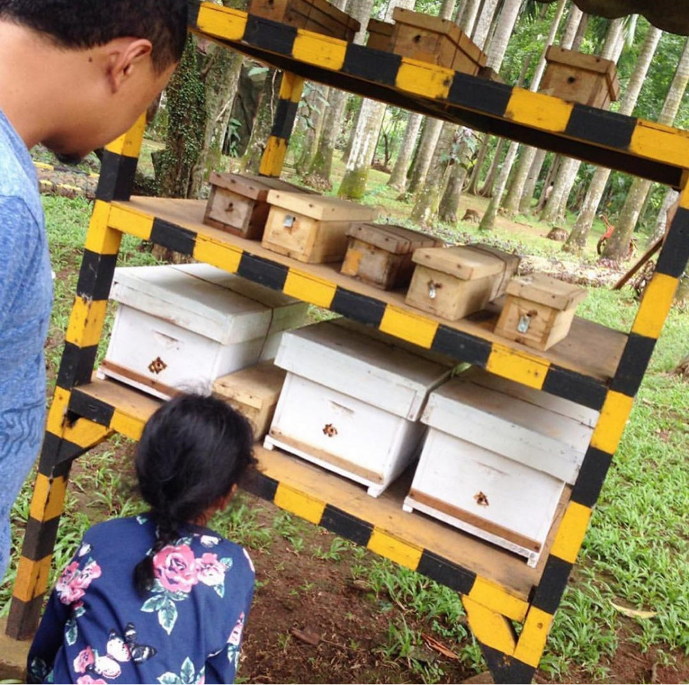 Di Taman Wisata Lebah Cibubur ini, anak-anak bisa mengenal proses pembuatan madu yang berasal dari sarang lebahnya. Bahkan bisa mencicipi langsung madu murni dari sarang lebah yang ada di kotak2 penangkaran lebah