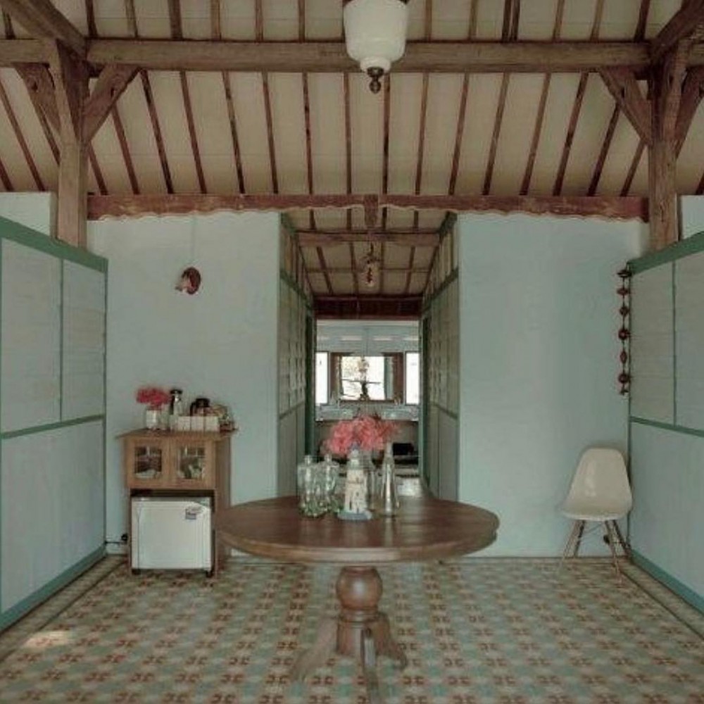 Roemah Pulomanuk ini kalau di lihat dari luar, bentuk rumahnya seperti rumah joglo. Dan bangunannya pun terpisah-pisah. Ada bangunan utk kamar-kamar tidur, bangunan utk duduk-duduk, bangunan dapur dan bangunan kamar mandi. Yang bikin paling jatuh cinta adalah bangunannya yang terkesan jadul tapi interiornya tradisional modern jadi satu