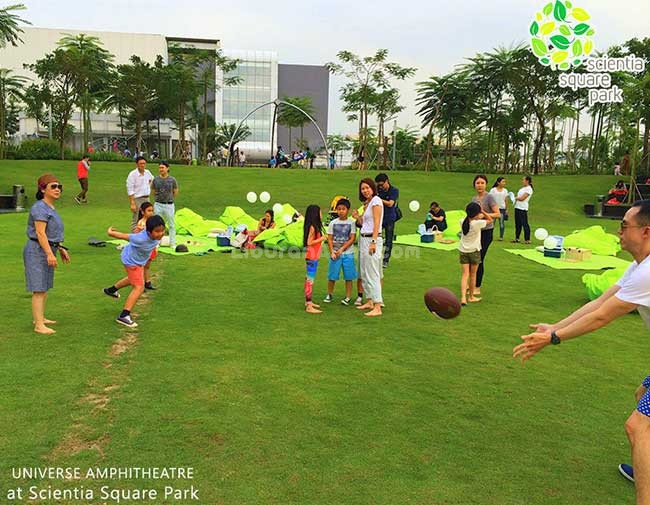 Ayah Ibu yang hanya ingin bersantai, bisa menghabiskan waktu membaca buku atau santai mendengarkan musik di Universe Amphitheatre. Duduk-duduk di lantai kayu atau bantal-bantal hijau besar yang disediakan gratis di lapangan oleh pengelola Scientia membuat suasana bersantai bersama keluarga dan teman-teman menjadi lebih menyenangkan. Lapangan rumput dan open air Amphitheater ini memang ideal sekali sebagai tempat untuk piknik atau menyelenggarakan acara yang melibatkan banyak orang.